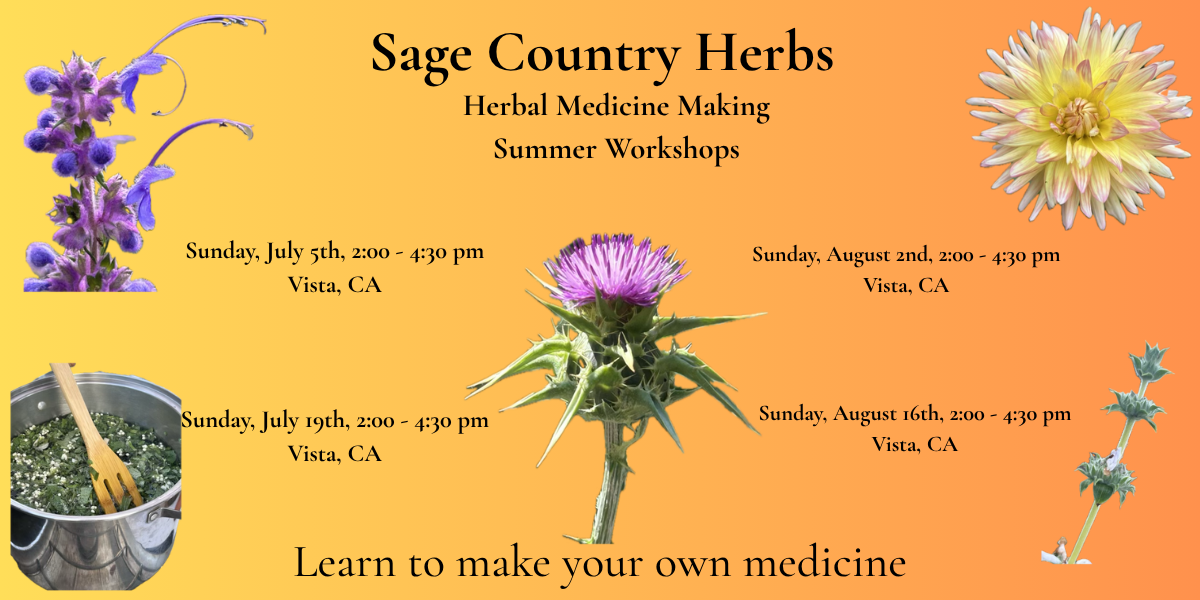 This summer, Sage Country Herbs is offering four workshops that explore the clinical application of plant medicine and nutrition — each focused on a specific area of health. You'll learn the physiology behind common conditions, how herbs and nutrients interact with body systems, and how to make effective remedies at home.